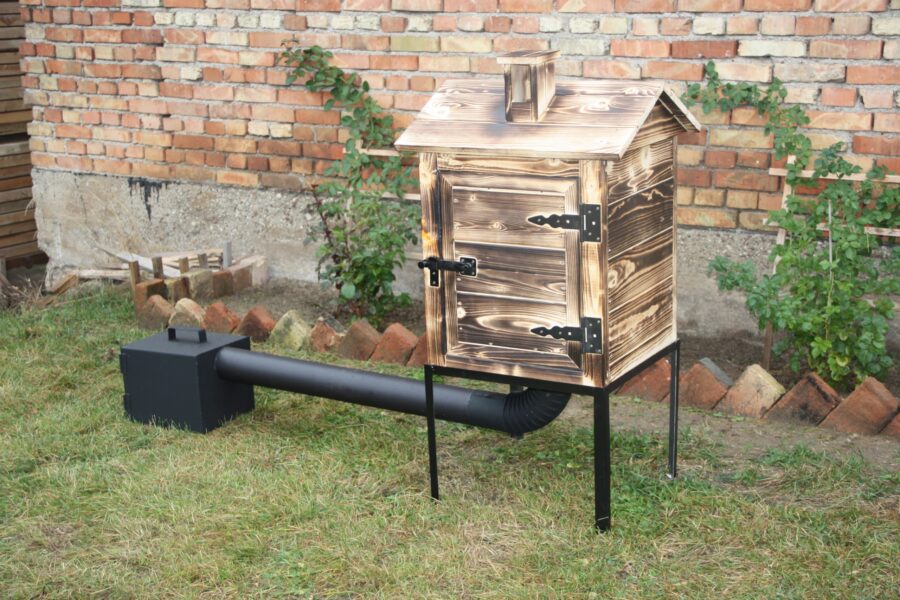 Все, что для этого требуется — сделать подходящих размеров коптильную камеру. Если вы собираетесь коптить продукты на горячую, то потребуется источник дыма (топочная камера). Печка должна находиться в непосредственной близости с камерой для продуктов.