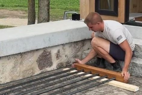 На последнем этапе останется только сварить вместе кусок листового металла и уголок, и приварить эту деталь к пруткам арматуры.