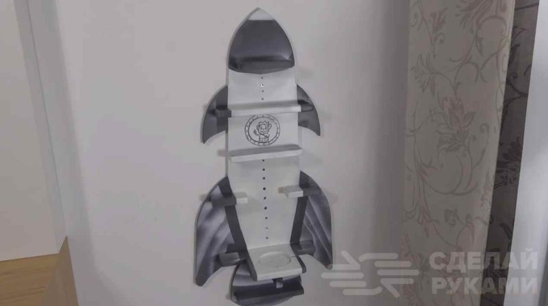 Также из кусков фанеры (можно даже обрезки использовать, если подходят по размеру) склеиваем полку. Она небольшая, но на нее можно без проблем положить телефон, ключи и разную мелочовку.