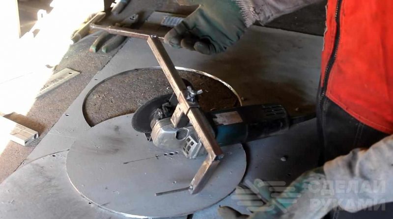 После этого надо отрезать два куска профильной трубы разной длины, а также два «коротыша» из профиля большего сечения. В них необходимо просверлить по два отверстия рядом друг с другом. Далее мастер приваривает «коротыши» к длинной пластине.
